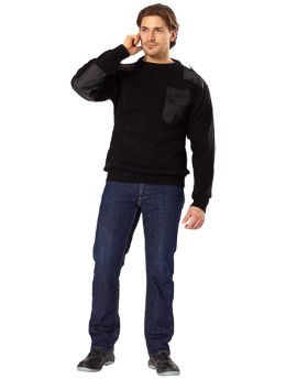 Джемпер-свитер форменный с усилительными накладками в области плеч и локтей, а так же накладной карман и погоны из водоотталкивающей ткани. Рекомендуется использовать с костюмами зимнего ассортимента, в т.ч. с костюмами охранника и как самостоятельную модель.