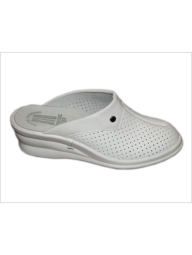 Верх сабо выполнен из искусственной перфорированной кожа, подпятник натуральная кожа. Подошва поливинилхлорид (ПВХ), метод крепления литьевой. Особенность модели перекидной ремешок из положения «сабо» в положение «сандалии» Модель предназначена для работников сферы обслуживания, текстильной, пищевой и легкой промышленности, медицинских работников, обслуживающего персонала.