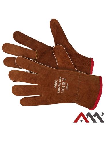 Цена данного товара указана без НДС! Перчатки защитные пятипалые Art.Mas DRIVER DW из коровьего спилока коричневого цвета. С тыльной стороны запястья он затянут резинкой, манжета отделана окантовкой. Перчатки полностью изготовлены из высококачественного коровьего спилока. Рукоятка выполнена из цельного куска кожи, анатомическое расположение большого пальца. Нагрудники, фиксирующие швы у основания среднего и большого пальцев, на резинке тыльная сторона запястья, законченная окантовка манжеты. Очень высокое качество изготовления. Они обеспечивают хорошее сцепление. Идеальные перчатки для работы во всех отраслях промышленности, идеальны для садовых, монтажных и экспедиторских работ. Пр-во: ArtMAS Польша