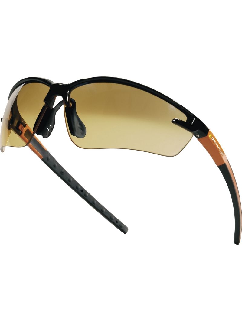 Открытые очки Delta FUJI2 с боковой защитой. Материал линз – оранжевый поликарбонат с градиентным затемнением (затемнение верхней части линз). Градиентные линзы снижают интенсивность солнечных лучей и, в то же время, позволяют четко различать детали предметов, находящихся на уровне глаз и нижеОптический класс - 1. Защита (спереди и сбоку) от летящих частиц (45 м/с) и УФ-излучения, защита от солнечного излучения. Механическая устойчивость к экстремальным температурам. Гибкие резиновые дужки против соскальзывания, выполнены из мягкого поликарбоната и TPR пластика Мягкая носовая перемычка из ПВХ. Комплектуются чехлом.