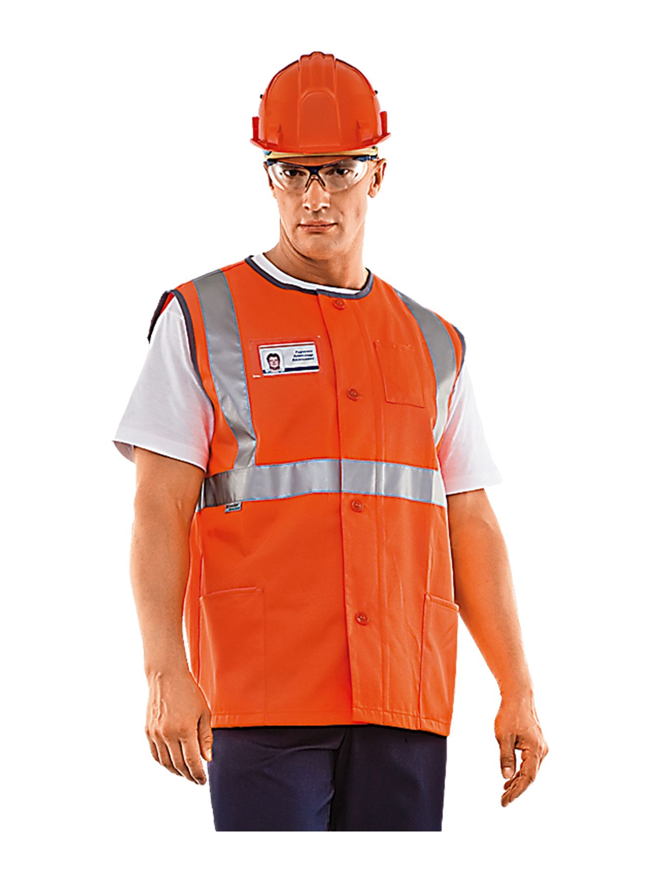 Сигнальный жилет "РЖД" тип Г рекомендуется для дорожных рабочих, муниципальных служащих, водителей. Жилет сигнальный легко стирается, долго сохраняет цвет. Жилет: прямого силуэта с округлым вырезом горловины и углубленными вырезами пройм, с центральной застежкой на 4 пуговицы и петли. Спинка без шва. Все срезы жилета окантованы тесьмой. Карманы: нижние накладные боковые карманы, входящие в боковой шов и подгибку низа; в верхней части левой полочки расположен карман для свистка, внутри кармана крепится шнур для свистка. В верхней части правой полочки прозрачный карман для удостоверения. Сигнальные элементы: СОП 50 мм.